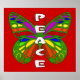 Una mariposa de color arcoiris tiene la palabra "paz" en el medio para mostrar lo frágil que es. Compártelo y muéstralo para construir fuerza en números para crear un mundo sin guerra.