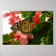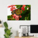 Decoración con una hermosa mariposa sobre flores rojas, ideal para casa, oficina o habitación para niños.