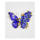 Joyería, azul, zafiro, mariposa de flor brillante con ala decorada con flores azules preciosas con hojas de oro sobre fondo blanco.