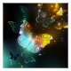 Mariposas brillantes nocturnas sobre fondo negro abstracto. Mariposa Luminosa.