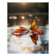 Un entorno natural tranquilo y pintoresco con una mariposa monarca que descansa delicadamente en una hoja flotante de otoño. Las ondas suaves en el agua crean suaves distorsiones del reflejo de la mariposa, mientras que la cálida luz dorada baña la escena en una atmósfera brillante. Los ricos colores otoñales en tonos naranjas, amarillos y tierra aportan una sensación de paz y belleza natural. Perfecto como arte mural para salas de estar, dormitorios o espacios de inspiración natural, esta obra de arte captura la tranquila elegancia del otoño y la frágil belleza de la mariposa.