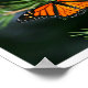 Fotografía de una mariposa monarca, con las alas extendidas, sobre un pino. Fotografía de Mark Evans.