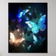 Fabuloso, brillante, azul y amarillo, mariposa nocturna sobre fondo oscuro.
