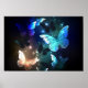 Fabuloso, brillante, azul y amarillo, mariposa nocturna sobre fondo oscuro.