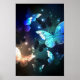 Fabuloso, brillante, azul y amarillo, mariposa nocturna sobre fondo oscuro.
