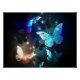 Fabuloso, brillante, azul y amarillo, mariposa nocturna sobre fondo oscuro.