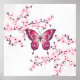 Póster Mariposa y flores de cerezo rosadas blancas