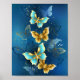 Composición de vuelo, joyería, oro y mariposas oscuras sobre fondo de joyería texturada. Mariposa dorada.