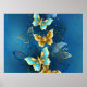 Composición de vuelo, joyería, oro y mariposas oscuras sobre fondo de joyería texturada. Mariposa dorada.