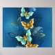 Composición de vuelo, joyería, oro y mariposas oscuras sobre fondo de joyería texturada. Mariposa dorada.