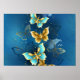 Composición de vuelo, joyería, oro y mariposas oscuras sobre fondo de joyería texturada. Mariposa dorada.