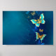 Oro volador, mariposa de joyas sobre fondo textural azul. Diseño con mariposas.