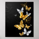 Oro, joyas y mariposas blancas sobre fondo negro. Mariposa dorada.