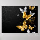 Oro, joyas y mariposas blancas sobre fondo negro. Mariposa dorada.