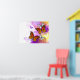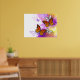 Naranja, mariposas monarcas detalladas sobre la luz, púrpura, pintoresco fondo pintado.