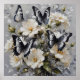 Póster Mariposas Negras Y Blancas Sobre Flores Blancas,