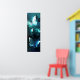 Mariposas brillantes nocturnas de menta sobre fondo abstracto negro.