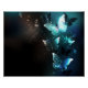 Mariposas brillantes nocturnas de menta sobre fondo abstracto negro.