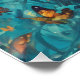 Una mujer con el pelo flotante, de color acuático, está rodeada de numerosas mariposas coloridas, lo que añade una sensación de capricho y magia a la escena. Su expresión es serena pero cautivadora, en armonía con las vibrantes mariposas que revolotean a su alrededor.
