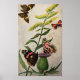 Impresión de ilustracion vintage con mariposas coloridas y plantas silvestres