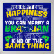 You Can't Buy Happiness, but You Can Marry a Brazilian, and That's Kind of the Same Thing - funny happily married to a Brazilian national, patriotic quote with Brasil flag. >> Cute gift idea for Brazilian bridal shower bride-to-be, groom, Valentine, or husband-wife wedding anniversary. >> Customizable artwork. Add YOUR OWN personal name or message. Click "Personalize this template" or create your own additional text, background shape, graphic, etc. to customize the final design.
