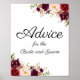 Utilice nuestro letrero de consejo marsala, borgoña y boda con flores de vino para que sus huéspedes sepan que abandonan la novia y le aconsejan. Asegúrese de buscar nuestras tarjetas de consejo de coordinación, que se venden por separado. La redacción es completamente personalizable. Utilice la herramienta "Personalizar esta plantilla" de Zazzle para introducir su propia información. Si necesita cambiar la ubicación de los cuadros de texto, el color de la fuente o el tamaño sólo tiene que hacer clic en el botón "Haga clic para más personalizares" para cambiar esas cosas. No deje de visitar nuestra amplia selección de artículos de coordinación, ya que puede visitar la colección de Bodas florales de Marsala.