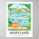 Maryland Viaje en Ilustracion de verano del estado de la línea antigua de Estados Unidos