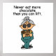 Mildred es una anciana de pelo gris que es bonito de expresar sus opiniones! En este lindo y gracioso diseño, ella proclama "¡Nunca comas más chocolate del que puedes levantar!". Diseño divertido en camisetas, bolsas, tarjetas, pegatinas, imanes, cadenas de claves, ornamentos, relojes y más para los amantes del chocolate!