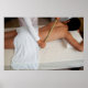 Cosas relacionadas con el masaje bambú. Aquí se ve el bastón verde de bambú que se usa en la parte trasera. Adiós subiendo y bajando por la parte de atrás. Con una toalla blanca sobre sus esperas. Este poster trabaja muy bien para los masajistas y los que trabajan en la industria del spa y la belleza.