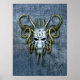 Esta máscara de guerra alienígena de cuernos es un espectáculo amenazante para ver, con su apariencia de cráneo y sus agudos picos metalizado sobresaliendo de su barbilla y sus cuernos de espiral de oro. Envuelto en un fondo gris, es un temible símbolo de poder y fuerza, apto para los guerreros más despiadados y hábiles.
