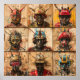Esta sorprendente colección de nueve máscaras guerreras abstractas y futuristas combina vibrantes influencias de graffiti con energía audaz y cruda. Cada figura está adornada con un casco único, que combina elementos de cultura callejera, ciencia ficción y armadura antigua. Las pinceladas caóticas y las texturas ricas ofrecen una estética urbana y ruidosa, mientras que los colores vivos crean un intenso impacto visual. Este dinámico arte mural es perfecto para espacios modernos que buscan una audaz declaración vanguardista que fusiona el futuro con el espíritu rebelde del arte callejero.