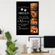 Elegante mascota tributo a la foto impresa con un elegante fondo negro que puede cambiarse a cualquier color, un collage de 4 fotos del mascota que recuerdas, una frase de simpatía que dice "cuando alguien que amas se convierte en un recuerdo, esos recuerdos se convierten en un tesoro", huellas de pata, el nombre de tu perro o gato, y su fecha de nacimiento/muerte.