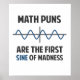 Golpes matemáticos.... la primera señal segura de locura! O sine. ¿Lo entiendes? Maddening, ¿eh? Agarra el gran diseño geek para ti mismo o para tu dorsal, profesor de matemáticas o estudiante favorito.