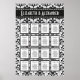 Elegante boda blanco y negro o carta de fiestas para la cena. Personalizar fácilmente la disposición con los nombres de los clientes. Puede colocar entre 6 y 9 en cada mesa, lo que significa que esta tabla puede ayudarle a sentarse entre 96 y 144 personas. El color de fondo negro es el personalizable. Puede hacer que este diseño coincida perfectamente con el esquema de color de su evento. ¿Por qué no encuadrar uno como recuerdo? Hemos elegido un tamaño estándar para un marco de precio razonable.