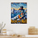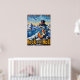 Esta pintura imaginativa muestra a un tiburón, un verdadero inconformista, con un sombrero de punta y sombras, entregando un solo épico de guitarra de una montaña cubierta de nieve. La escena se despliega sobre un hermoso cuerpo azul de agua salpicado de hielo blanco, y majestuosas montañas bajo un cielo claro. El grueso y distintivo cepillo aporta una textura dinámica a toda la composición, capturando perfectamente el espíritu de ROCK y ROLL