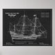 Planes de barco de Mayflower. El famoso barco del siglo XVII que transportó a los peregrinos a América. Diseño del buque. Planes de dibujo o esquemas con esquema de diseño para Mayflower