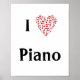 Póster Me encantan las notas del Corazón Rojo de Piano
