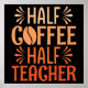 El divertido diseño de café para el profesor que ama su café, incluye un grano de café y un texto que lee Half Coffee Half Teacher! Café de profesores diseña tazas, pegatinas, bolsas, almohadas, camisetas, y más!