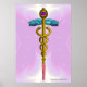 Póster MÉDICA CADUCEUS ORO, símbolo médico rosa claro