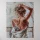 An oil painting capturing a serene moment on a sunlit Mediterranean balcony. A woman in a flowing white wrap stands with her back turned, her hair lifted by a gentle breeze, set against soft architectural details. Ideal for adding timeless elegance to home decor or gifts.