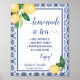 LEMONS BLUE MEDITERRANEAN LEMONADE & TEA BAR WEDDING BRIDAL SHOWER SIGN. Change text to the design. For additional changes (font color, font style, move elements), click on personalize, scroll down, and click on the link "Edit using Design Tool" / "Customize with Design Editor" - Check the collection for all matching designs!