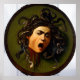 Experimente el impresionante drama y el poder mitológico de la Medusa de Caravaggio (alrededor de 1597-1598), una pintura al óleo sobre lienzo montada sobre un escudo de madera. Esta icónica obra barroca captura la cabeza cortada de Medusa en el momento de su decapitación por Perseo, con su rostro congelado en una vívida expresión de horror y dolor. El uso pionero del tenebrismo y el realismo por parte de Caravaggio da vida a la figura mitológica, enfatizando las serpientes que se escriben en su cabello y la sangre que gotea del cuello. La pintura fue encargada por el cardenal Francesco Maria del Monte y entregada al Gran Duque Fernando I de Medici, simbolizando el poder militar mediático. Ahora ubicado en la Galería Uffizi, Florencia, esta huella de calidad de museo es perfecta para los amantes del arte y coleccionistas que buscan un dramático arte barroco italiano e imágenes mitológicas intemporales para su casa u oficina.