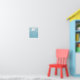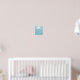 Arte de pared lindo para niños con una ilustración de dibujos animados de una pequeña medusa nadando en el océano. Colores azules suaves. Ideal para una guardería con tema de océano o bajo el mar.
