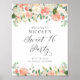 Melocotones acuáticos y crema floral dulce 16 Fiestas signo de bienvenida. Un cartel de bienvenida de personalizable con escritura caprichosa y ilustraciones acuarelas y peonías de marfil, rosas, hortensias con acentos fológicos. Este cartel de bienvenida con flores es perfecto para eventos de primavera y jardín.