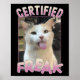 Póster Meme de gato Freak Cute certificado ama a los anim