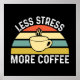 A cualquiera que le guste el café y sepa el efecto que tiene en su nivel de estrés le encantará este diseño de café de estilo retro en bolsas, tazas, pegatinas, camisetas, almohadas y más con una taza de café humeante con un texto que diga Menos estrés más café.