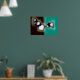 Impresión abstracta con esquema de color marrón y Verde azulado complementario que incluye negro y blanco