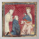 Mensajeros de la F.117r de la escuela francesa contando a Charlemagne la victoria sobre los Saracens, de las Grandes Crónicas de Francia, 1375-79 localizadas en la Bibliotheque Municipale, Castres, Francia. Los Mensajeros del F.117r que cuentan a Charlemagne la victoria sobre los Saracens, de las Grandes Crónicas de Francia, 1375-79, se crearon alrededor del siglo XIV.