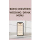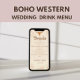 Póster Menú Boho Western boda bar, boda de bebidas Poste