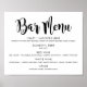 Póster de menú de barra de boda casual y chic / letrero presenta tipografía de guión simple y moderna y un esquema de color clásico de blanco y negro. Listo para personalizar para su evento.